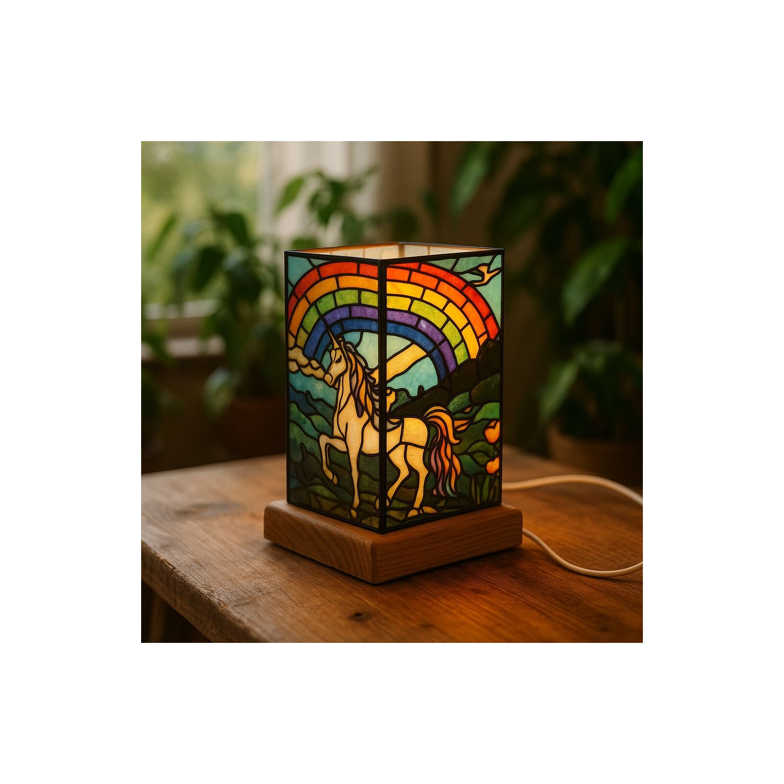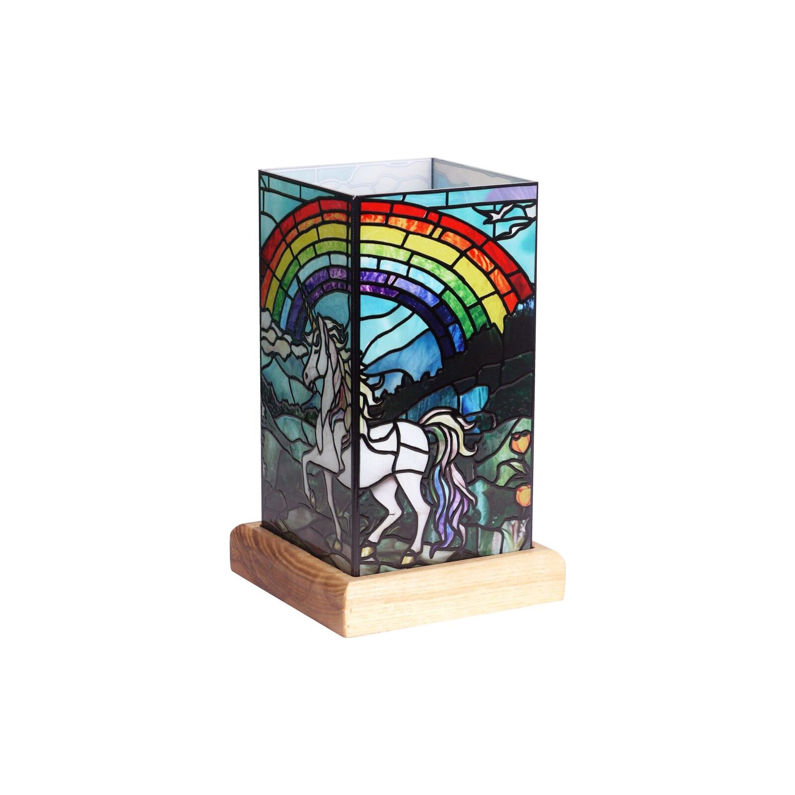Jednorožec - LED dekorativní lampa na dřevěném podstavci