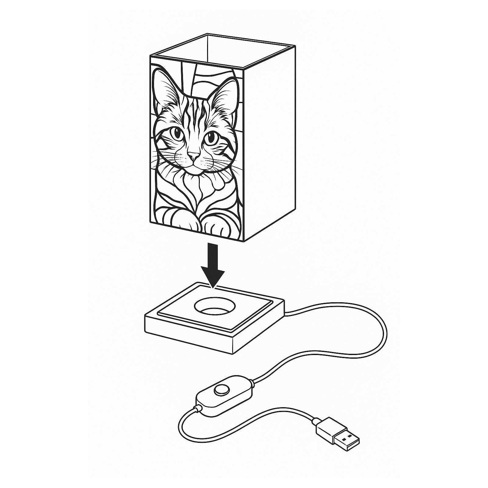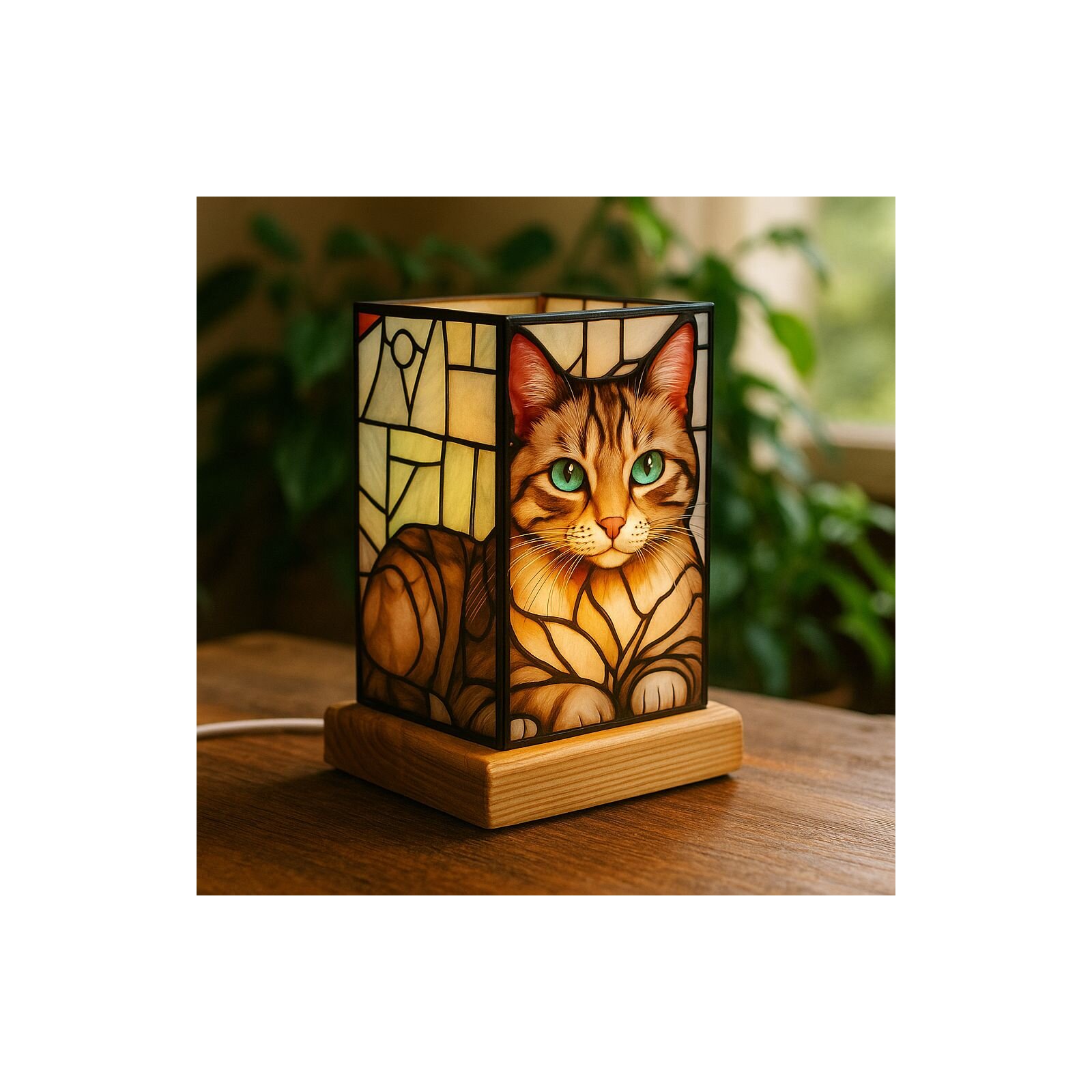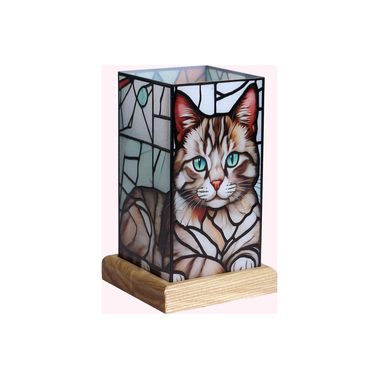 Kočka - LED dekorativní lampa na dřevěném podstavci